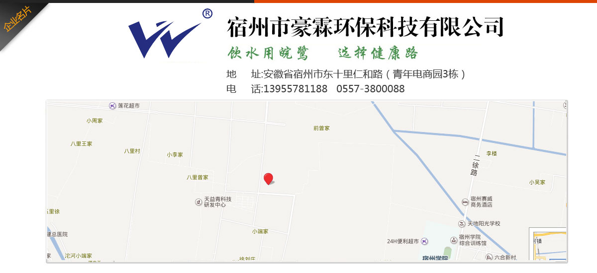 - 宿州市豪霖環(huán)保科技有限公司專業(yè)致力于水處理產(chǎn)品和系統(tǒng)水處理工程,集產(chǎn)品的開發(fā)與銷售、工程配套與安裝、技術(shù)咨詢與服務(wù)于一體的新型環(huán)保企業(yè)。主營(yíng)產(chǎn)品:家用、商用純水機(jī)系列,能量活水機(jī)系列,家用、中央用凈水器系列,管線機(jī),泵、膜系列,各種零配件、水處理耗材等配套產(chǎn)品系列,循環(huán)冷卻水處理系統(tǒng),鍋爐軟化水處理系統(tǒng),海水、苦咸水淡化、污水處理系統(tǒng),軟化及過(guò)濾裝備,紫外線及臭氧消毒設(shè)備等全部產(chǎn)品。